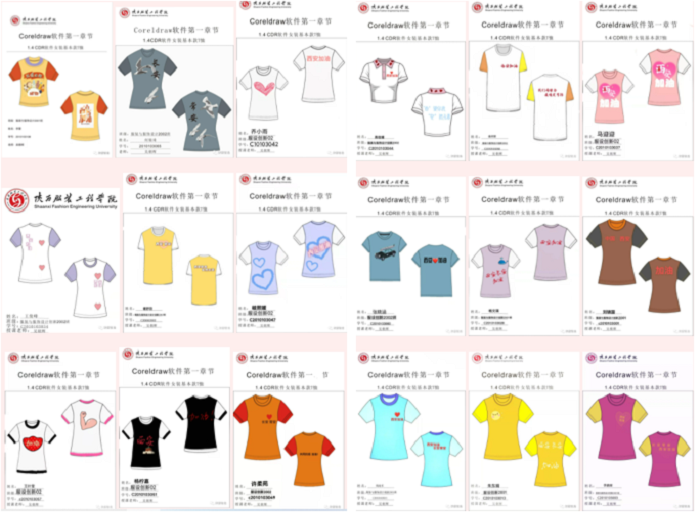 3.作业上交情况良好,下图为《童装设计》、《Coreldraw》课程优秀作业展示。